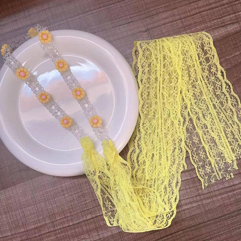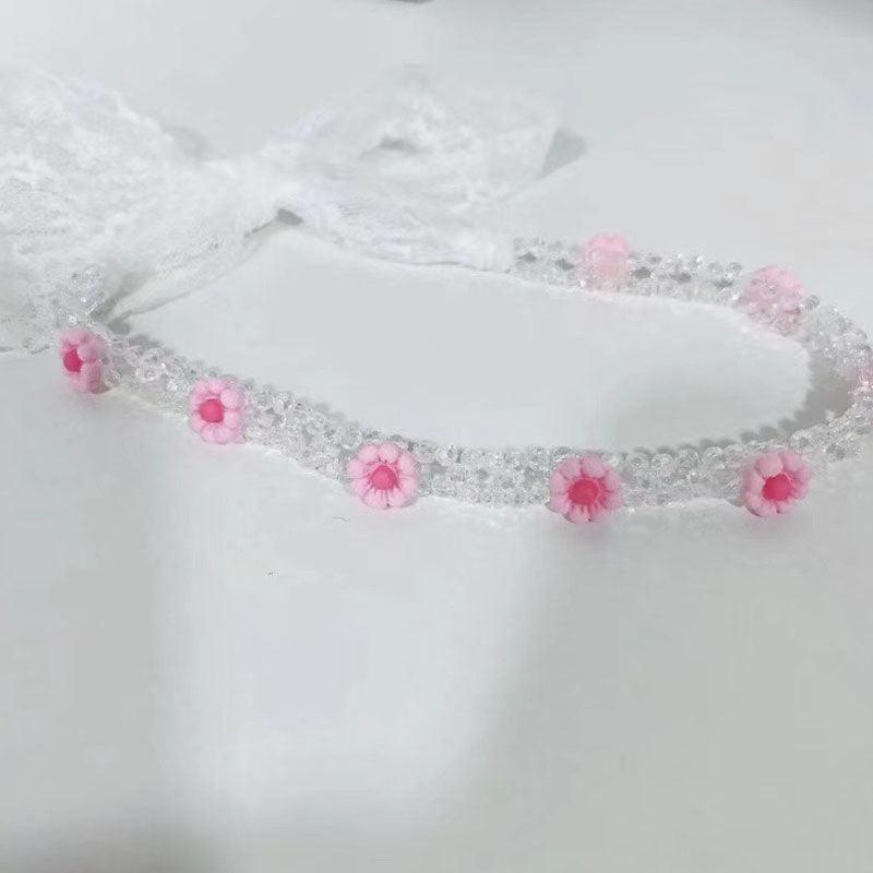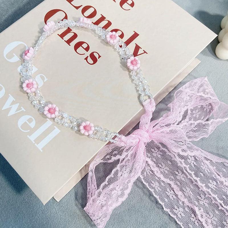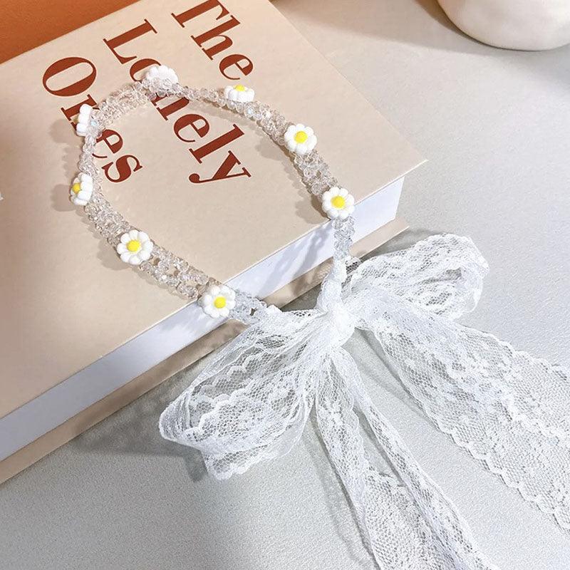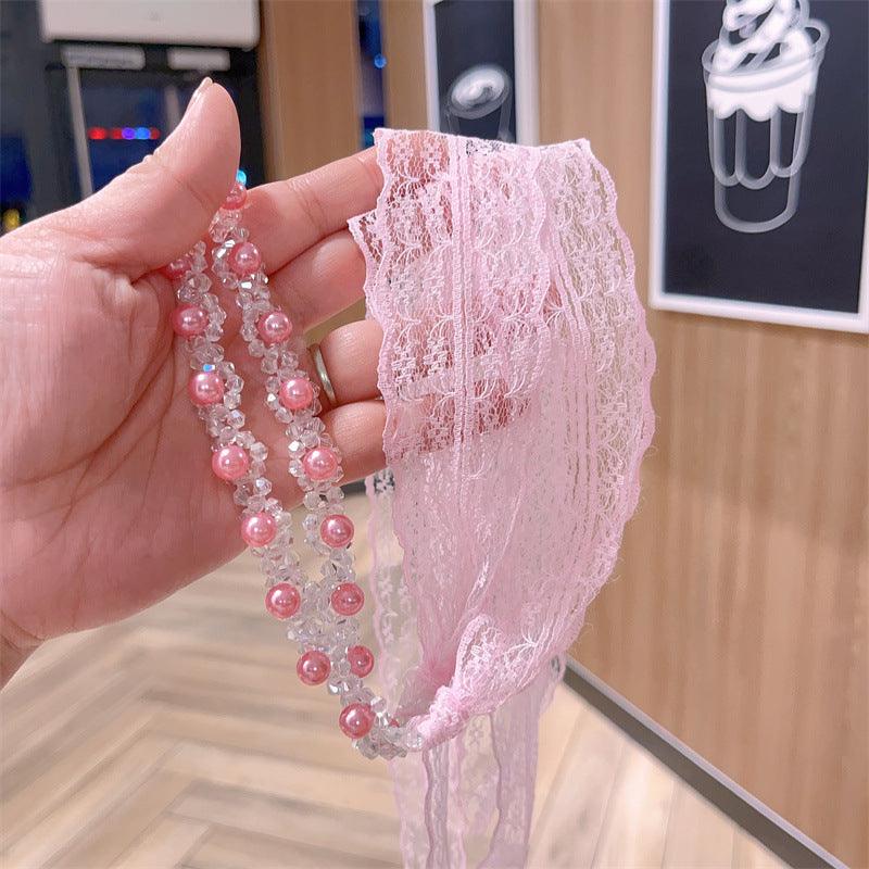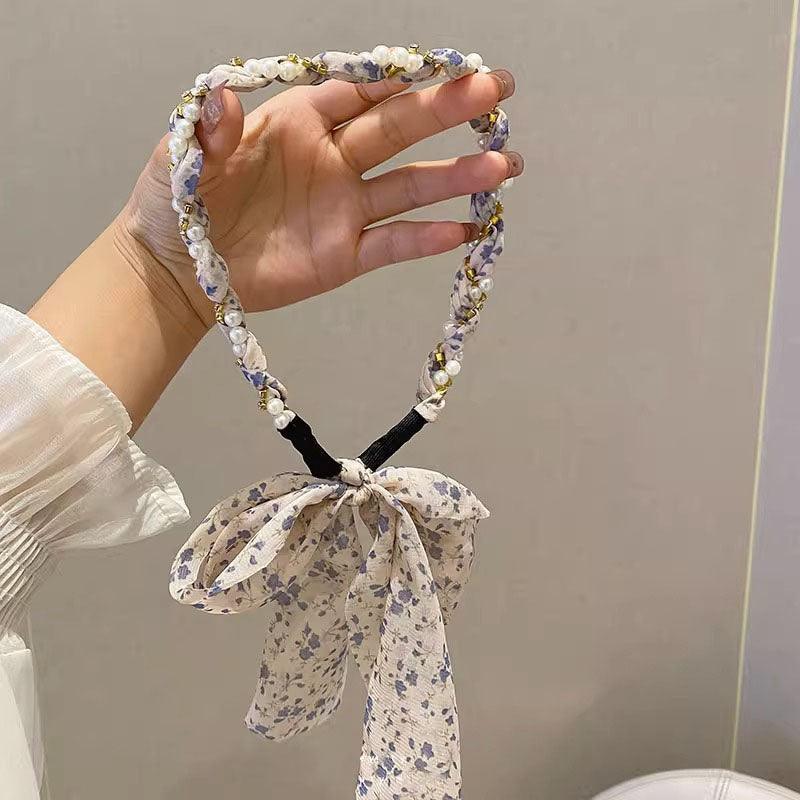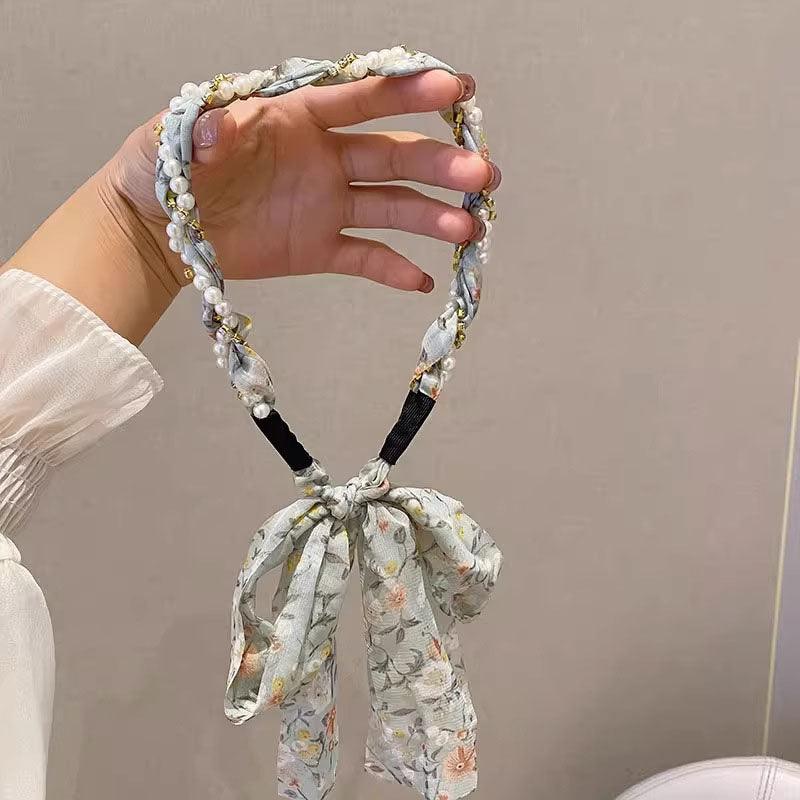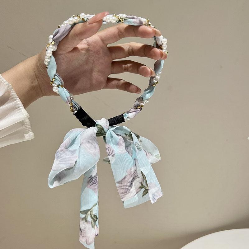 Braided hair ribbon, pearl floral silk scarf headband, sweet crystal pearl hair bow headband, floral lace, popular hair accessories, hair styling