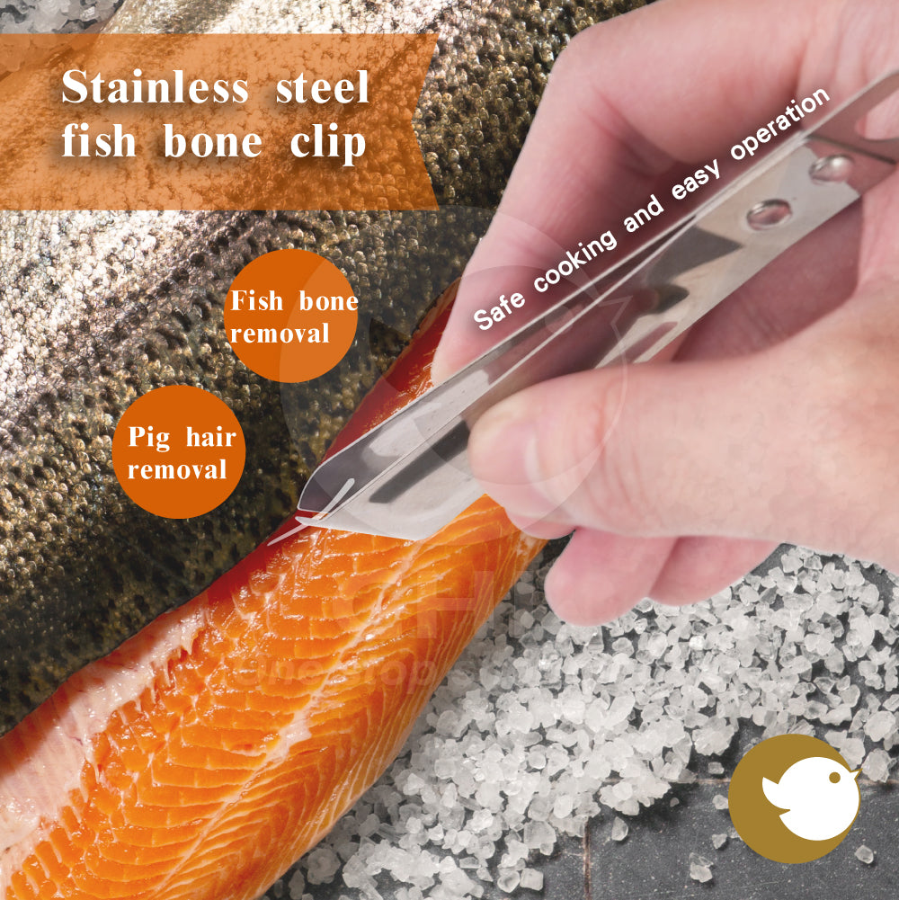 This stainless steel fish bone clip is made of cutlery-grade metal and is specially designed to handle fish bones, pig hair and other detailed needs, making your cooking process easier and more convenient.