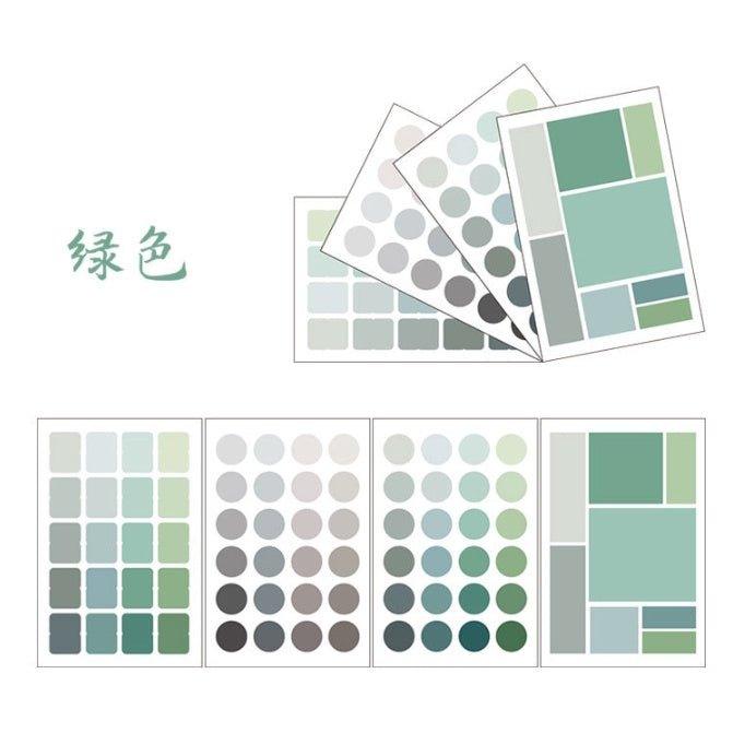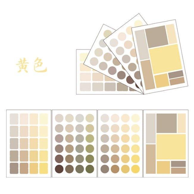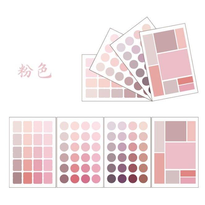 मल्टीफंक्शनल कलर लेबल स्टिकर जापानी और कोरियाई हैंडबुक कलर लेबल स्टिकर सजावटी स्टिकर राउंड स्क्वायर मार्कर इंडेक्स स्टिकर मटेरियल स्टिकर सेट