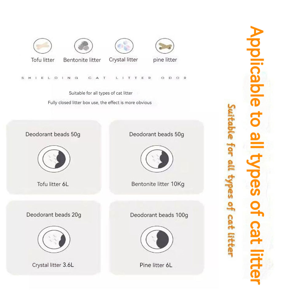 Introducing our Cat Litter Deodorizing Beads - the perfect solution for keeping your furry friend's litter box fresh and odor-free! We believe that plant ingredients are the best for pets, which is why our beads are specially formulated with natural extracts to effectively capture, decompose, and cover odors without simply masking them.