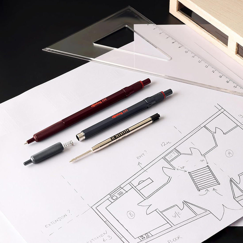 The rOtring 600 series, a classic representative from Germany, is famous for its all-metal pen body and hexagonal anti-slip design. It combines extreme durability with a stable writing feel. The German red ring logo is a low-key embellishment, giving it a full sense of professionalism.