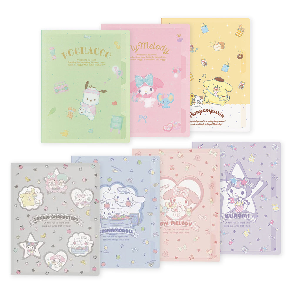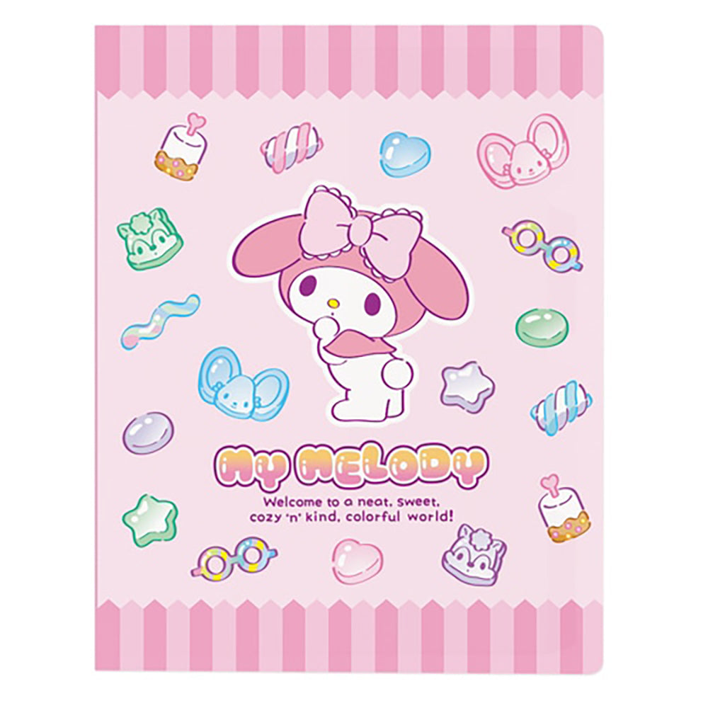 🌈Adorable B5 size 26-hole binder featuring popular Sanrio characters on translucent satin material.