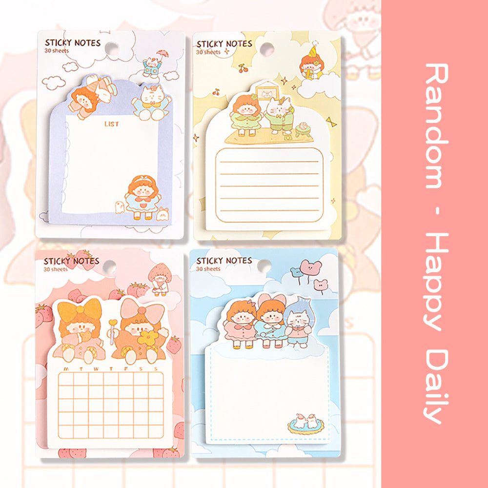 NP-H3SQFF-000-1 Creative Cartoon Style Post-It Notes Office Stationery Message Stickers Happy Daily-Single Layer (Sold Randomly)