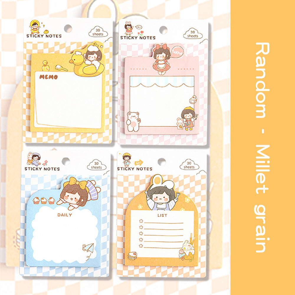 NP-H3SQFF-000-2 Creative Cartoon Style Post-it Notes for Office Stationery Message Stickers Millet Grain-Single Layer (Sold Randomly)