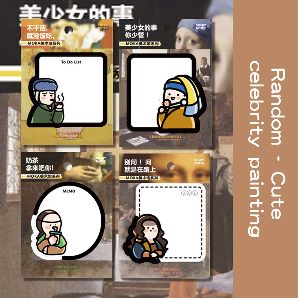 NP-H3SQFF-000-3 Creative Cartoon Style Post-it Notes for Office Stationery Message Stickers Cute Celebrity Painting - Single Layer (Sold Randomly)