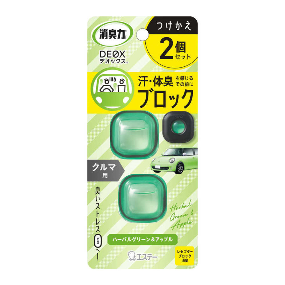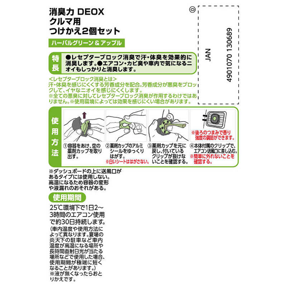 Deodorizing Power DEOX Antibacterial Deodorant Car Deodorant Car Refill 2-piece Set Grassy Apple Smell Air Purifier Car Fragrance Solve Sweat Odor and Body Odor