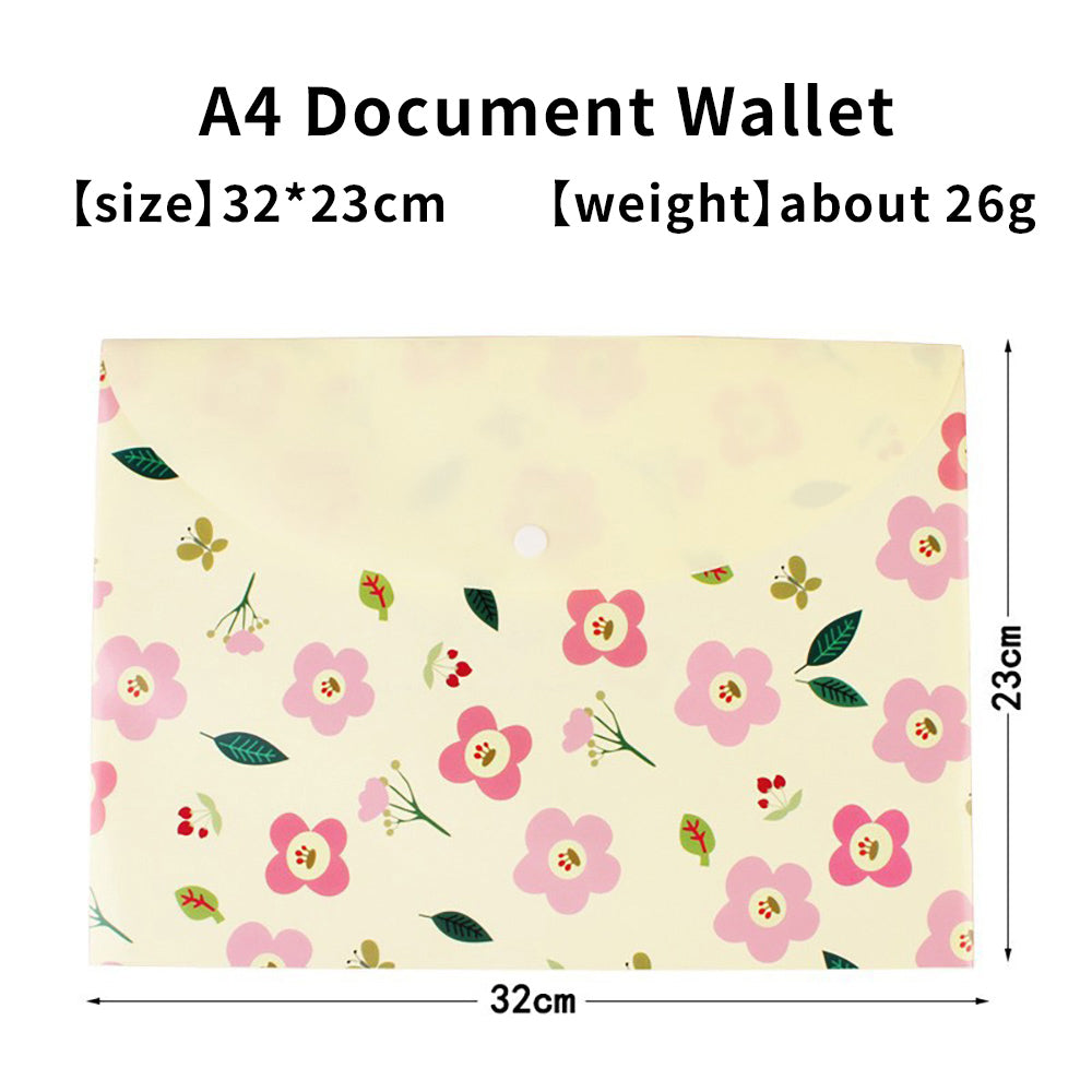 Korean stationery file bag, cute cartoon floral PP information bag, student prize test paper bag, snap information bag, fresh folder, student office stationery, file storage bag