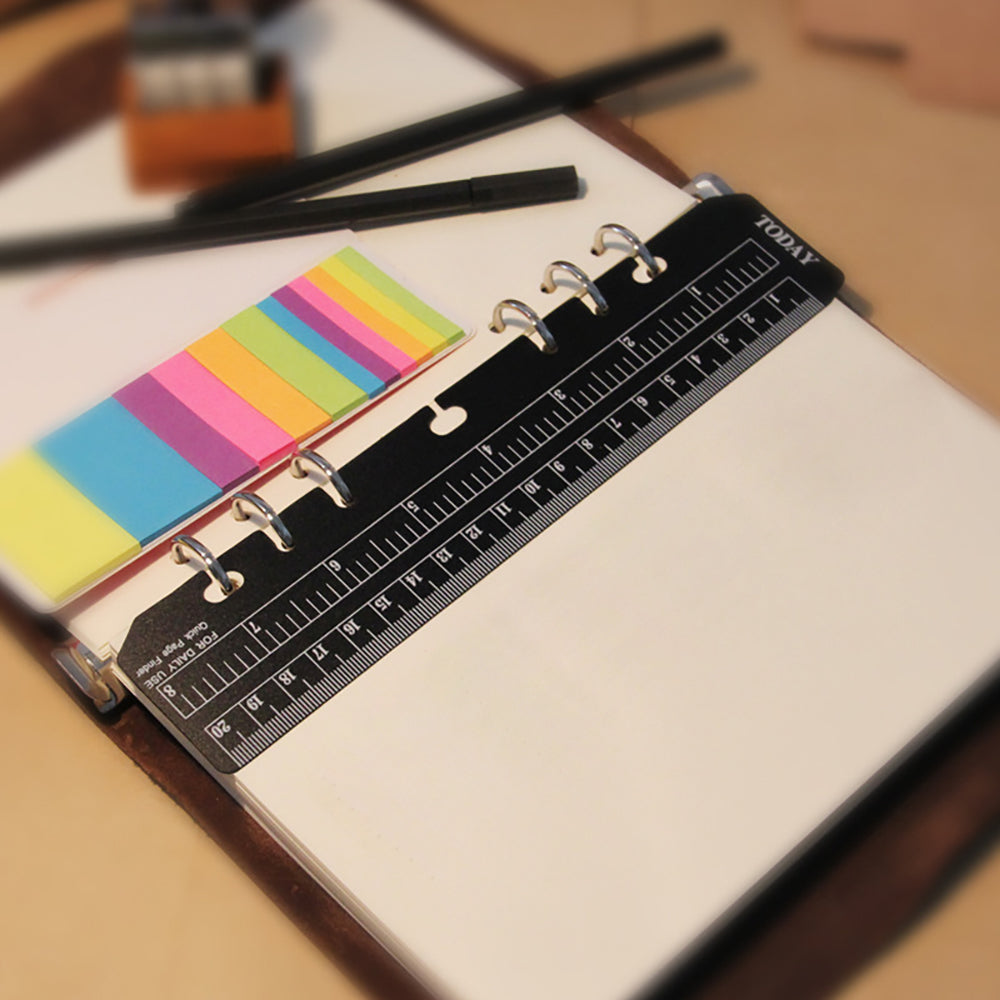 The loose-leaf ruler is a stationery accessory that combines the functions of bookmarking, drawing, and measuring. It is especially suitable for six-hole loose-leaf notebooks.