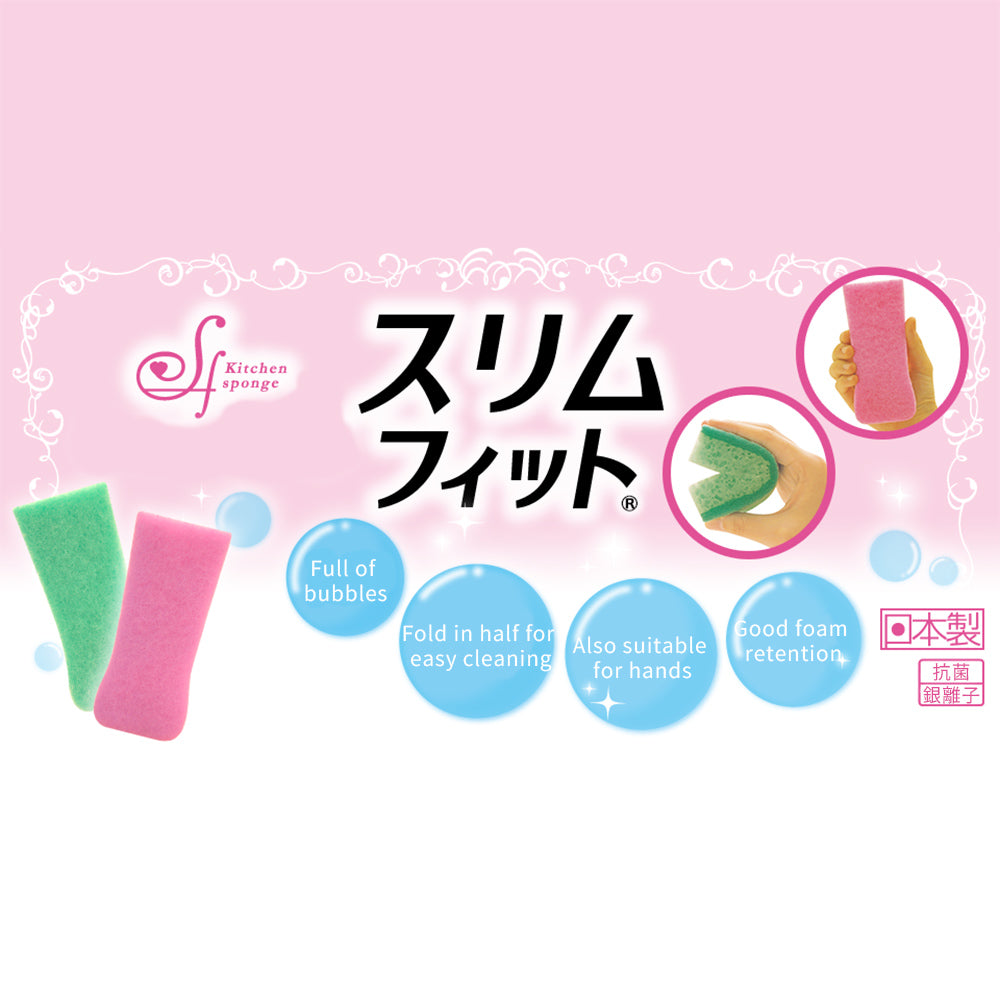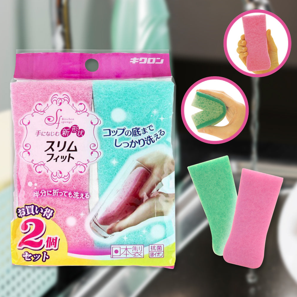 Made in Japan, easy to foam, comfortable to touch dishwashing sponge, 2-pack, tableware, cups, cleaning utensils, stain removal, detergent supplies, kitchen utensils, fine foam