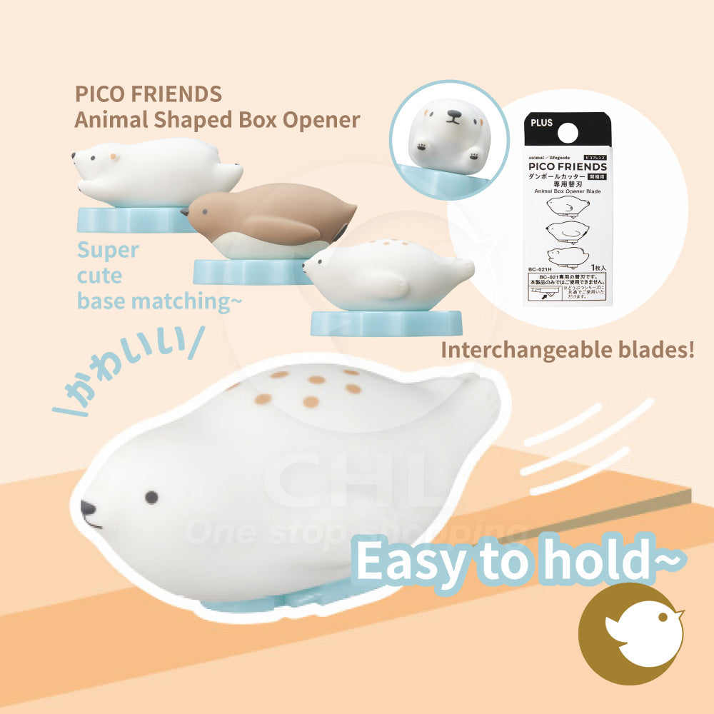 PLUS PICO FRIENDS Animal Shaped Box Opener, Box Opening Tool, Blade replacement