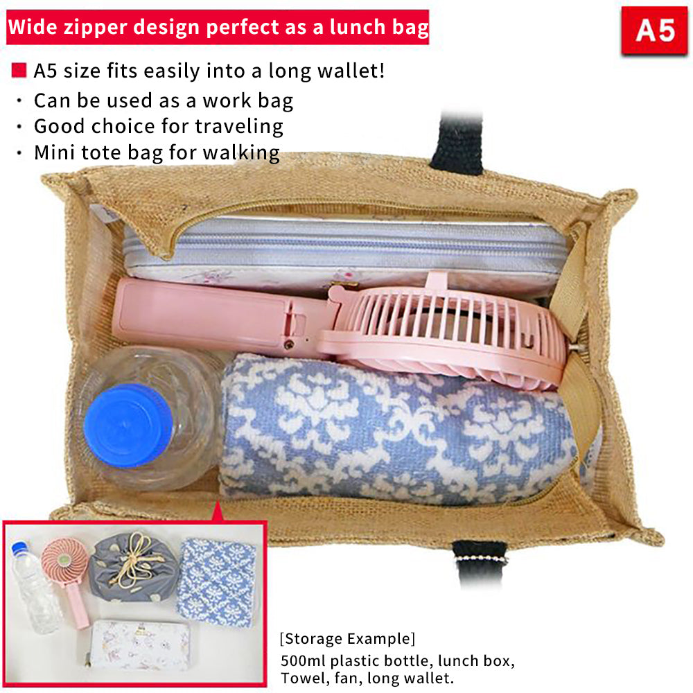 Sanrio popular character jute handbag, pass case, zipper, jute material, eco-friendly, Indian hemp, wide mouth, Cinnamoroll Kuromi, Hello Kitty handbag, study bag