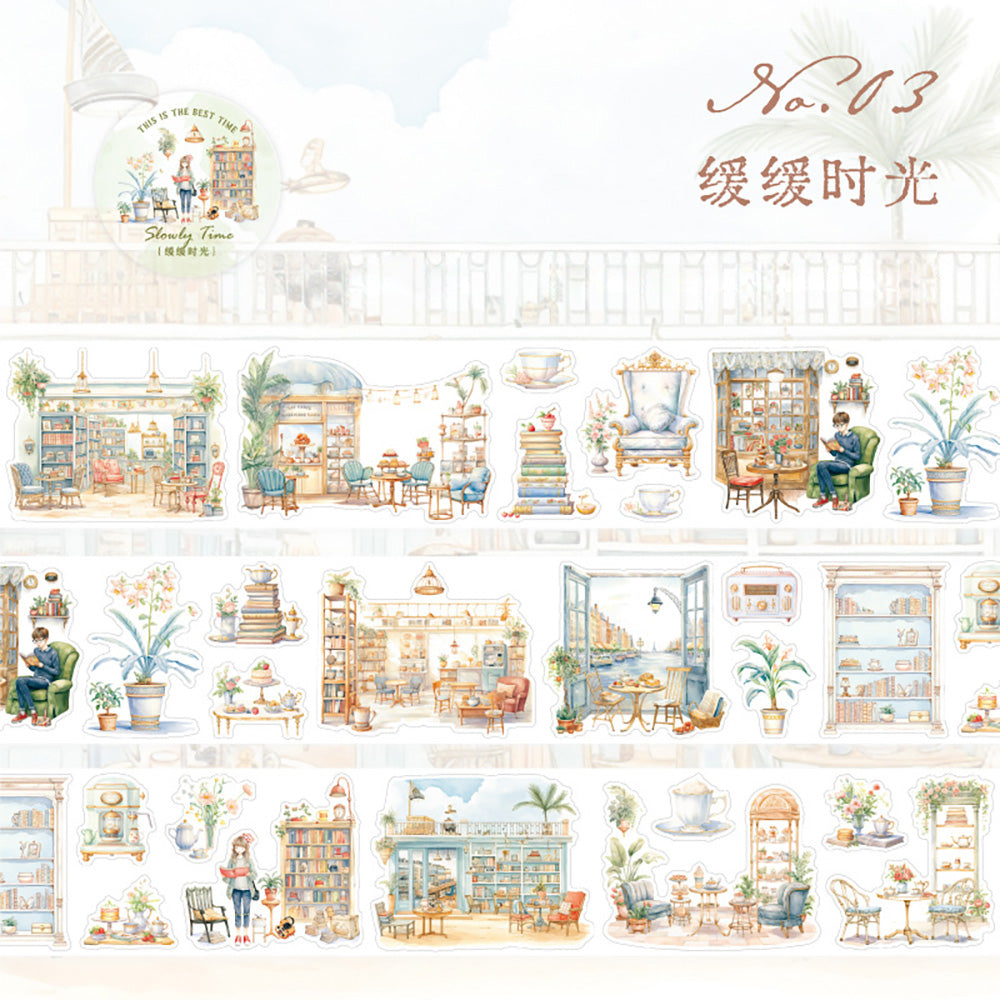 Create layered, atmospheric journal spreads with this unique 1-meter looping washi tape, crafted with precision die-cut edges and high-quality semi-transparent Japanese paper.