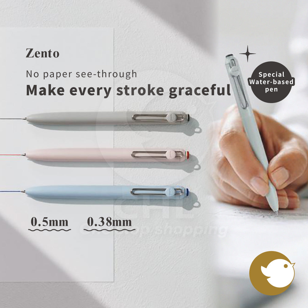 UniBall Zento special water-based pen 0.38mm 0.5mm soft writing feel clean lines no bleeding no smudging ballpoint pen